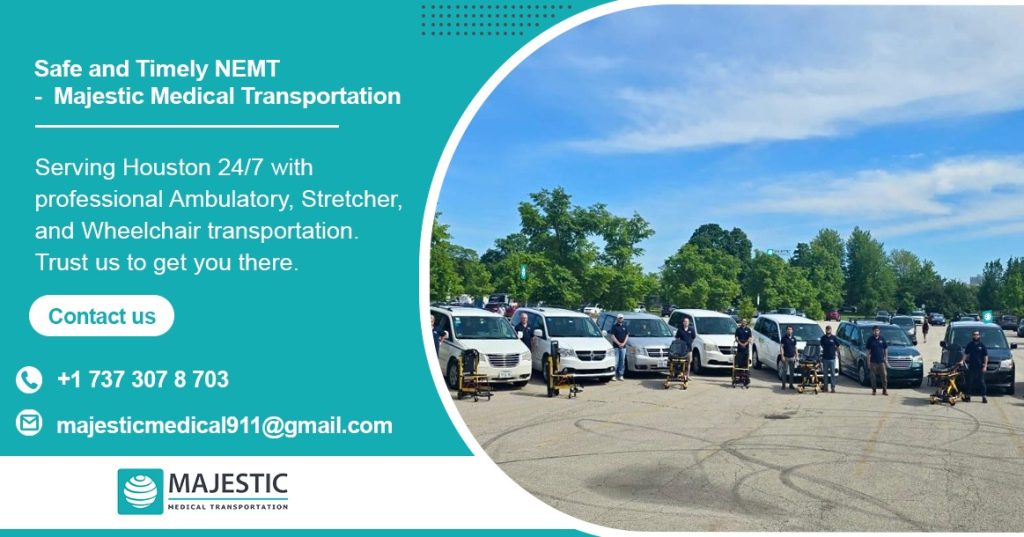 Non Emergency Medical Transport in Houston — Majestic Medical Transportation Inc. provides safe, reliable, and compassionate wheelchair and stretcher transportation services across Greater Houston and nearby areas.